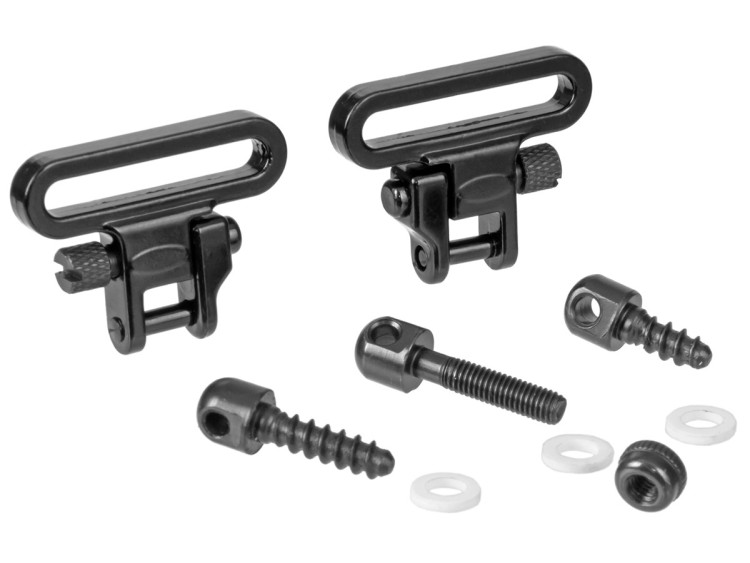 Универсальные быстросъёмные антабки ShotTime в комплекте с несколькими шурупами, винтом и гайкой. Ширина ремня 30-33 мм.