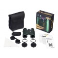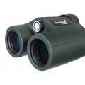Корпус из надежного пластика целиком обрезинен, что защищает прибор от легких ударов, он не боится пыли и воды. Бинокль будет прекрасно справляться со своей задачей в любых неблагоприятных условиях.