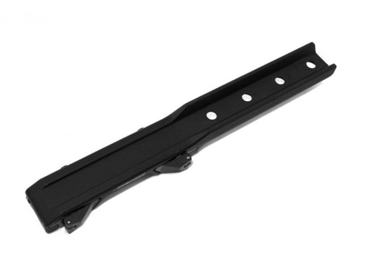 Все очень просто — прислонить ответную часть кронштейна к основе и закрыть зажимной рычаг. Флажок рычага в сложенном положении не возможно открыть случайно. Нажав кнопку с противоположной стороны кронштейна, освобождается флажок запорного механизма, только после этого замок можно открыть и снять кронштейн. Прицельное устройство можно установить или заменить в течении считанных секунд.