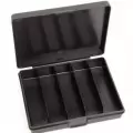 Внешние и внутренние части футляра отливаются из пластика марки ABS. Основные свойства материала ABS – ударопрочность и отсутствие усыхания. Внешняя и внутренняя часть корпуса кейса пластик черного цвета. Все материалы, используемые в производстве футляра не подвержены коррозии, не испаряют вредные вещества и не меняют своих свойств и размеров, в зависимости от температуры. Материал устойчив к различным моющим средствам. Футляр изготовлен, из безвредных для окружающей среды материалов и полностью перерабатываются без использования вредных кислот. Открывание и закрывание футляра осуществляется при помощи пластиковой защелки.