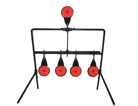 Мишень возвратная (тир) Birchwood World of Targets® Gallery®, малая. Сбрасываемая мишень (тир) для нарезного оружия калибров .22LR и .17 HMR, мощного пневматического оружия (в том числе со стальными шариками BB). Изделие не требует сборки и инструмента для сборки, быстро и легко устанавливается. Тир состоит из 5 мишеней диаметром 49 мм (внутри каждой красный круг диаметром 38 мм). Все нижние мишени тира при попадании перемещаются вверх. Для того, чтобы вернуть их в исходное положение, нужно попасть в верхнюю. Соответствует стандартам НРА стрелковых дистанций на 40 метров. Оборудование изготовлено из металла, не имеет сварных швов (толщина прутков 12 мм, пластин 5 мм). Габаритные размеры приблизительно 37 см х 27 см х 27 см. (гарантированно поместится в багажнике любого автомобиля).