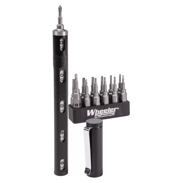 Набор микро-бит в виде ручки, от бренда Wheeler: Micro Multi-Driver Tool Pen – один из таких наборов. Разработанные для профессионального оружейника и продвинутого пользователя, инструменты набора отличаются исключительно высокой практичностью, высококачественные материалы обеспечивают реальную надежность и долговечность, - их качество гарантировано на всю жизнь. Удачный по форме, чтобы удобно поместиться в руке, этот держатель – контейнер битов, по размерам и форме напоминающий карандаш и выполненный из алюминия, удерживает пять наиболее часто используемых бит внутри алюминиевого контейнера.