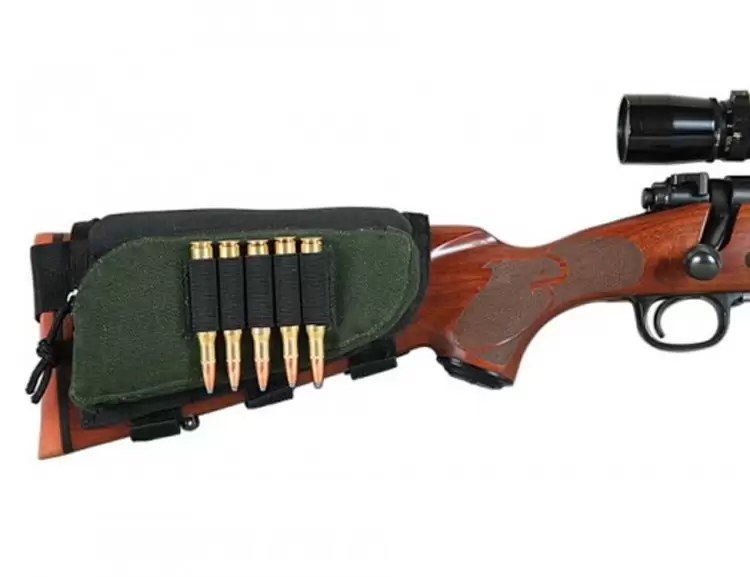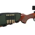 Патронташ на приклад Allen на пять нарезных патронов с карманом. Патронташ на приклад необходим охотнику для хранения патронов на нарезное оружие (для 5 патронов). Он изготовлен из прочной ткани неопрен, расцветка пояса - черный/зеленый. Мягкая и невысокая подушка добавляет примерно 8 мм. к высоте приклада. Патронташ закрепляется на прикладе любого ружья. Есть карман на молнии для различных аксессуаров. Закрепляется на прикладе с помощью 4-х ремешков на липучках.